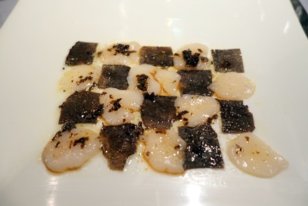Le Champagne Krug 1988 claque comme un fouet. Si le Salon se veut accueillant, le Krug se veut guerrier. Il dégaine son Excalibur pour fendre nos papilles. Ce Krug 1988 est au sommet de sa gloire. L’accord avec le sucré de la coquille et avec la truffe est un des piliers de la gastronomie. Nous nous régalons d’un champagne très typé, profond, vif et racé, avec une légère pointe de fumé mais aucune trace d’âge.