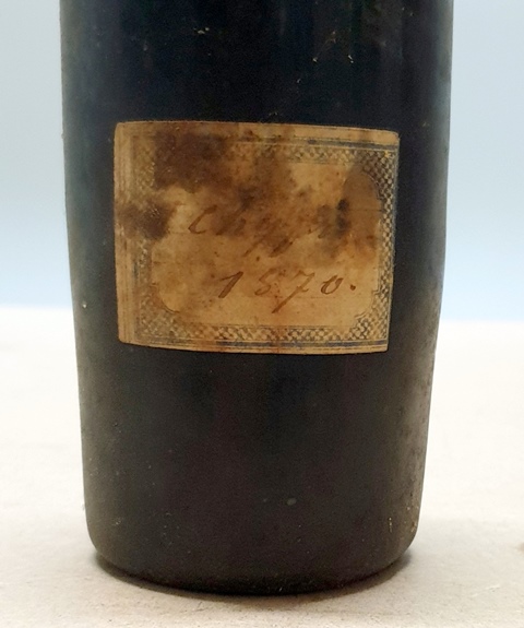 Vin de Chypre 1870 (comme souvent avec ces liquoreux du 19ème siècle, le bouchon a le bas très incliné. Pourquoi, je ne sais pas)