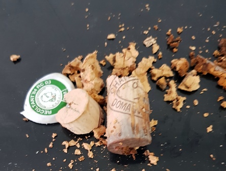 pour le Châteauneuf-du-Pape on voit à quel point le bouchon a été creusé par le tirebouchon qui a fait de la charpie