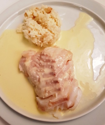 Et nous avons raison, car le Chablis Grand Cru Moutonne Domaine Long-Dépaquit Albert Bichot 2002 est au sommet de sa forme, puissant, riche en bouche, de belle mâche, avec de très agréables complexités et une minéralité délicate de galets qui roulent dans des torrents d’été. Les langoustines sont fondantes et l’accord est idéal, la trace de mandarine titillant le vin. Le dos de cabillaud est d’un goût très typé qui s’accorde bien au chablis.