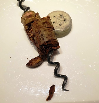 Je commence les ouvertures des vins à partir de 17 heures car Matthieu, le sommelier du restaurant, m’a déconseillé de venir à 16 heures du fait que des clients du service du midi risquaient d’être encore présents. Tous les bouchons sont venus entiers ou avec de faibles brisures. Est-ce un effet des conditions atmosphériques d’avoir des comportements de bouchons qui se ressemblent, c’est une énigme que je vais essayer de résoudre par l’expérience.