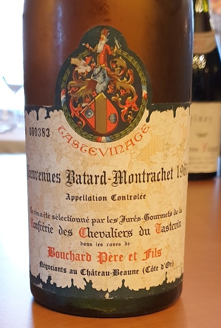 Le Bâtard Montrachet Fontaine & Vion 1990 a un nez irréel. D’une puissance incroyable, celle des grands Bâtards. Le turbot est cuit à la perfection et la pomme de terre comme la sauce forte auraient dû être mis en sourdine pour laisser la place à l’accord divin de la chair du poisson avec le vin puissant riche, au fruit généreux.