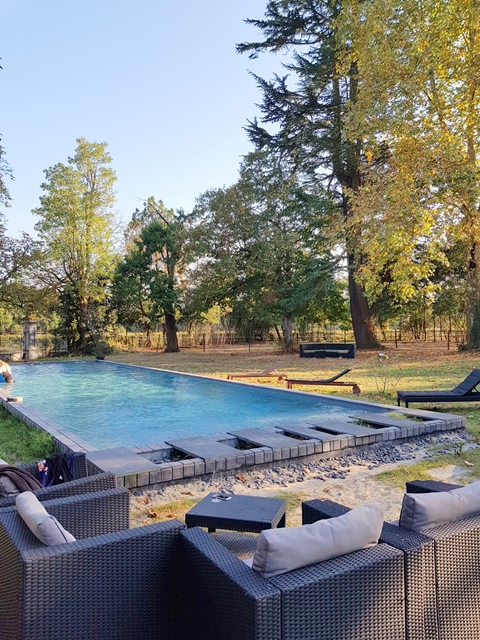 Nous passons à table dans la salle de restaurant que nous occupons entièrement en sept tables de huit. Le menu préparé par le restaurant et mis au point avec moi est : tartare de bar au citron confit, œuf de truite et estragon / ravioles d’escargots et gambas, persillade et sauce à l’Arbois / filet de bœuf, sauce périgourdine et crème de foie gras / saint-nectaire / Pavlova aux pommes et ananas, chantilly mascarpone / chocolats / café et mignardises.