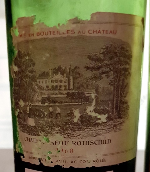 Je vois ensuite un Richebourg de la Romanée Conti au millésime difficile à lire. Ce pourrait être 1975. En soulevant la cape qui avait déjà été découpée il y a longtemps pour lire le millésime, je peux voir distinctement 1966.