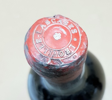 Je vois en cave une bouteille dont le cul profond indique un âge certain et dont la couleur rose m’intrigue. Il s’agit d’un sauternes, Château Rayne-Vigneau dont je ne connaîtrai le millésime qu’en enlevant la feuille de plomb qui forme la capsule. C’est 1923 ou 1928. J’ai opté pour 1928 en scrutant le dernier chiffre.