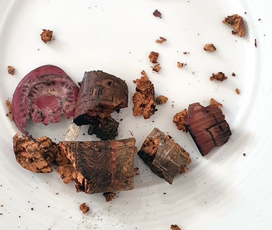Les magnums de Coteaux du Layon Château du Breuil 1985 ont de vilains bouchons qui se brisent en morceaux alors que le vin est jeune. Son parfum est subtil.