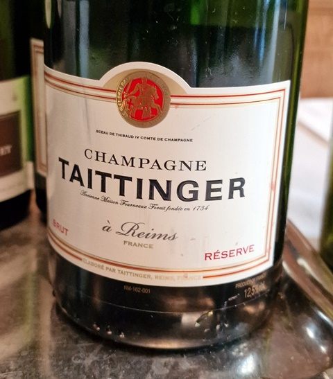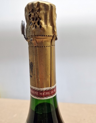 Pour un nouvel apéritif, j’ouvre un Champagne Krug Grande Cuvée dont l’étiquette est de couleur bordeaux, probablement des années 90.