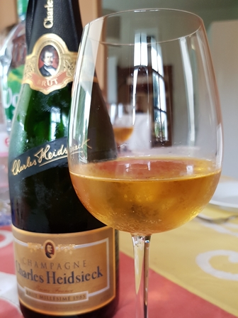 J’ouvre un Champagne Charles Heidsieck Brut 1985. Le bouchon est magnifique, le pschitt est marqué et la couleur du champagne est d’un jaune presque orange. Ce qui frappe immédiatement c’est la sérénité joyeuse de ce champagne. Il est grand et on est bien. Je ne l’imaginais pas aussi brillant. Alors que j’ai été ébloui par le Blanc des Millénaires de Charles Heidsieck 1985, j’aurais tendance à mettre ce champagne au-dessus de lui tant il est accompli et totalement équilibré. Fortement imprégnant il est quasiment parfait. La qualité que je retiens surtout c’est l’équilibre dans la majesté.