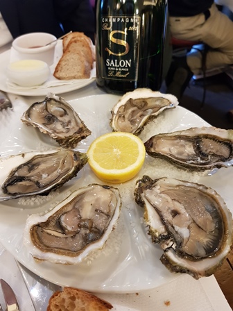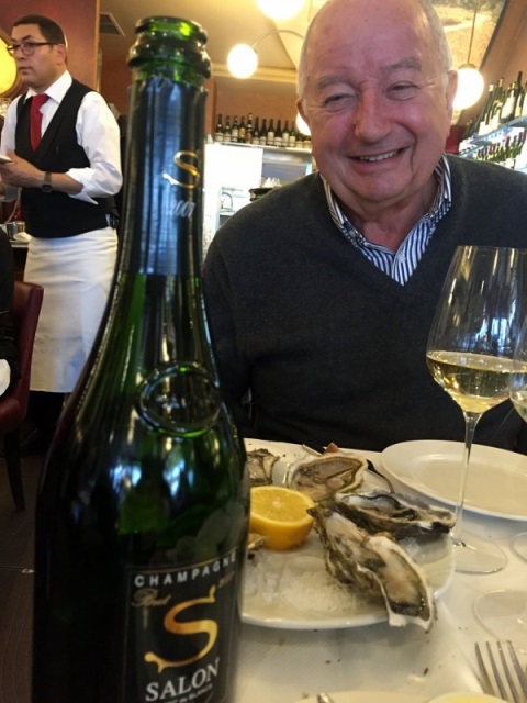 Le nez du Salon 2007 est impressionnant, vif et salin. En bouche nous nous regardons Didier et moi car ce 2007 est la définition absolue d’un grand Salon. Il a tout pour lui. Didier le compare volontiers au 1997 qu’il adore. Je le rejoins. Ce n’est pas un champagne d’affirmation, même s’il en impose, mais c’est toute la grâce subtile de Salon. C’est un magnifique champagne. Avec les huîtres l’accord est un régal car c’est le sel qui les réunit. Et les huîtres sont délicieuses.