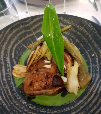 Sur la viande Didier fait servir le Champagne Delamotte Blanc de Blancs 2008. C’est un superbe champagne bien large. On n’est pas au niveau du Salon mais il ne faut pas comparer car ce Delamotte a une très belle complexité. Il est généreux et facile à vivre.