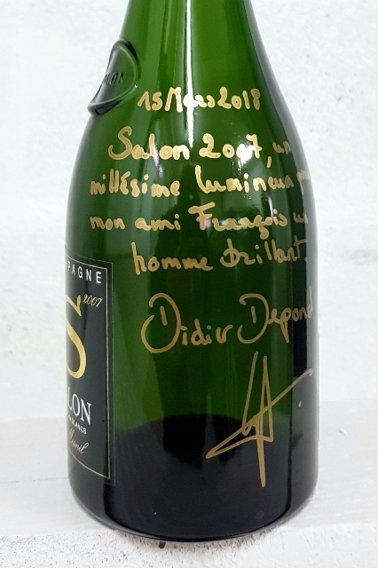 la bouteille de Salon 2007 que Didier Depond m’a dédicacée