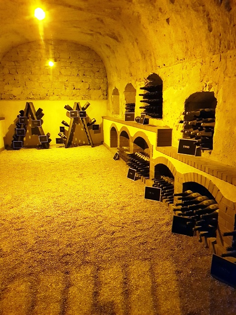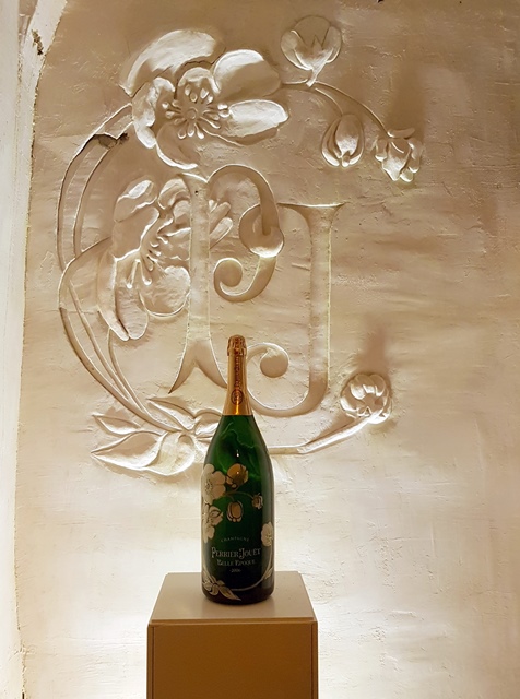 Nous visitons la Maison Belle Epoque qui a été la demeure du fondateur de la maison Perrier-Jouët en 1811. La décoration est totalement Belle Epoque avec des meubles rares. On croise ici un tableau de Toulouse-Lautrec et là une sculpture de Rodin offerte par le personnel « au patron » comme il est écrit sur l’étiquette en cuivre. On me dit que le lit de la chambre qui m’est affectée vaut une petite fortune. Avant de visiter les caves, on nous offre un verre de Champagne Perrier-Jouët Belle Epoque 2008 qui est particulièrement brillant, doté d’une belle maturité malgré son jeune âge, serein et conquérant, d’une longueur remarquable.