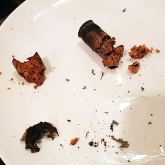 Le Champagne Mumm Cordon Rouge magnum 1989 a une belle couleur et une belle acidité. Il est très jeune, très toasté et ce qui me gêne un peu c’est la longueur assez courte, ce qui ne semble pas troubler les autres participants, les trois œnologues et Alexander. Le Vin de l’Etoile Paul Comte 1979 est d’une belle couleur légèrement ambrée. Le nez est très typique du Jura avec des notes légèrement torréfiées. Il est sec, très sec même et fluide. Le vin féconde le champagne car il lui donne de la largeur et des notes salines. Le 1989 évoque de beaux fruits et du sel. Il est très distingué, fluide et gastronomique. Il est fait de 70% de pinot noir et 30% de chardonnay. Des notes iodées apparaissent lorsqu’on le boit à la suite du vin de l’Etoile.