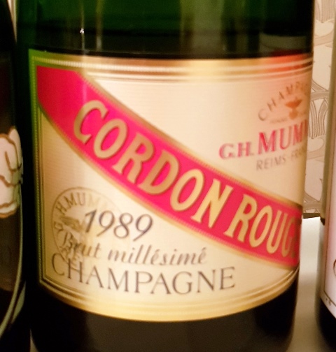 Le Champagne Mumm Cordon Rouge magnum 1976 a un nez très expressif et une belle matière. Il est gourmand. Le champagne n’avantage pas le vin du Jura alors qu’à l’inverse, le 1979 rend le 1976 de Mumm absolument fabuleux. Il lui donne de la longueur ce qui justifie ma remarque précédente sur la longueur du 1989. Il y a dans ce 1976 des notes de safran, une extrême délicatesse avec une attaque toute en douceur. Il a les mêmes proportions de cépages que le 1989.