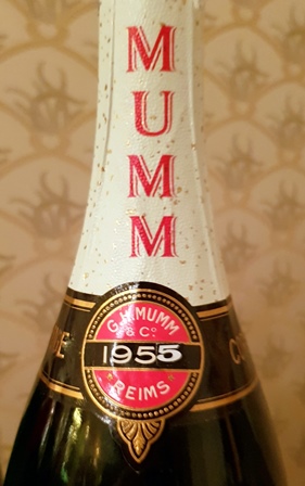 Le Champagne Mumm de Cramant Blanc de Blancs magnum 1955 est légèrement ambré. Son nez est subtil. En bouche il est d’un raffinement extrême. Ses amers sont superbes. Il est fluide, racé et noble et cohabite bien avec le 1979 du Jura qui en profite et dans le sens inverse, le 1955 ne profite quasiment pas du vin du Jura. Le 1955 est plus à son avantage s’il est seul. Il a été dégorgé il y a un an ce qui lui donne une jeunesse extrême. Il est très difficile de hiérarchiser le 1976 et le 1955. Les deux ont beaucoup de charme. Le 1955 en se réchauffant devient exceptionnel.