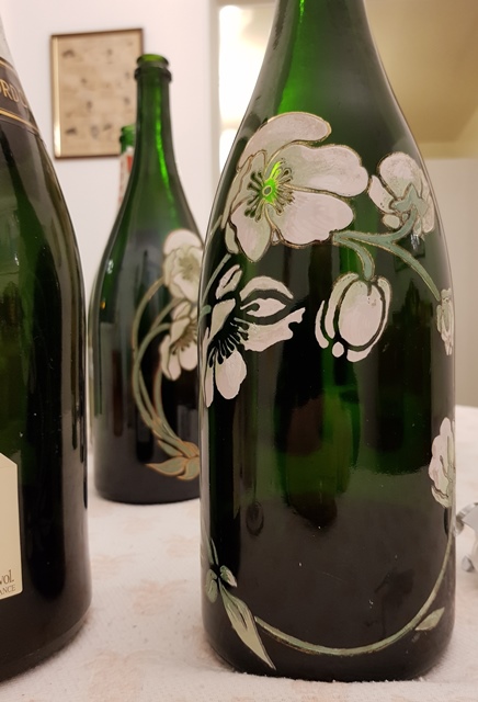 Hervé nous raconte des histoires passionnantes pendant que nous arpentons les kilomètres de cave (en partie seulement). Dans la cave des trésors il y a des bouteilles de la première moitié du 19ème siècle qui me font rêver. Ici ou là il y a des œuvres d’art très modernes dans des impasses voûtées. Nous remontons directement dans la Maison Belle Epoque pour commencer la dégustation. Magalie Maréchal, adjointe du chef de caves de la maison Mumm, nous rejoint.
