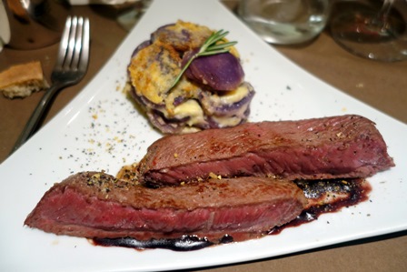 L’agneau se présente avec des pommes de terre violettes dont la mâche est superbe. Il est temps d’aller dormir car mon séjour à Londres fatigant suivi immédiatement de cette belle dégustation et de ce dîner amical imposent mon repos.