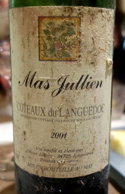 Le Coteaux du Languedoc Mas Jullien 2001 est d’un style qui me plait plus car il y a une complexité et une vibration qui me parlent plus. Le vin est plus vif et agréable.