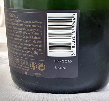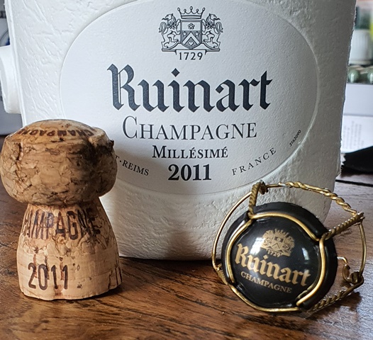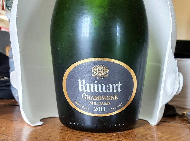 Ayant gardé la bouteille, j’ai bu ce champagne le soir. La fiche donnée par la maison Ruinart dit que ce champagne en dentelle se déguste à l’apéritif et ce jugement est justifié. C’est plus un champagne d’apéritif que de repas, car il manque un peu de largeur. Il est globalement très plaisant et se boit bien maintenant, sans nécessité particulière de le laisser vieillir plus.