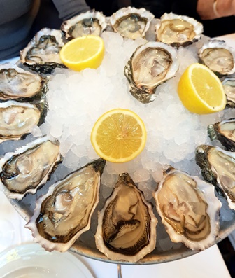 Arrivés à la brasserie, le cadre est toujours aussi beau, le personnel toujours aussi brasserie. Je commande un Champagne Dom Pérignon 2006 qui me semble faire une suite logique à l’osciètre. Pour qu’il y ait continuité, nous prenons des huîtres Gillardeau n° 3 et je commande une sole pendant que Karin commande un saumon qui va apparaître beaucoup trop cuit selon une tradition culinaire française. Ma sole, à la sauce un peu lourde mais à la pomme de terre légère est beaucoup plus agréable. Le Dom Pérignon est très aidé par l’huître pour trouver une vibration et une assise que j’apprécie. Le champagne est franc, droit, facile à comprendre et de belle mâche. Comme il en reste nous prenons un morceau de munster bien affiné.