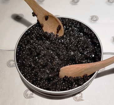 Le caviar « cristal » est d’une couleur qui fait penser à un caviar albinos. La couleur est d’un marron gris clair. On est troublé par l’attaque déroutante mais le finale est très équilibré. Au deuxième essai, l’attaque ne rebute plus et il reste un caviar très intéressant et hors norme qui donne envie de l’essayer en gastronomie.