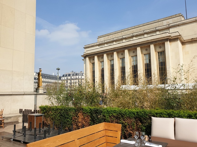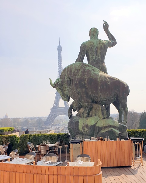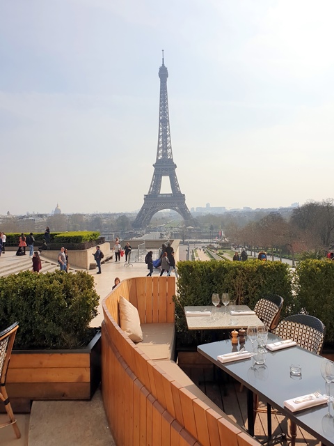 Je suis invité au Café de l’Homme dont le nom m’intrigue. Il est en fait accolé au Musée de l’Homme, ce qui explique son nom. Une magnifique terrasse est au niveau de l’esplanade du Trocadéro et donne une vue imprenable sur la Tour Eiffel et la Seine. Cet emplacement est idéal. Le soleil brille et cela donne des envies d’été mais l’air est encore très frais en cette fin mars.