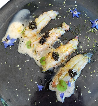 Un petit amuse-bouche n’ajoute pas grand-chose à notre plaisir. Les langoustines crues au caviar sont magiques et donnent une résonnance au champagne qui est un supplément d’âme.
