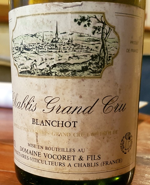 Le Chablis Grand Cru Blanchot Domaine Vocoret & Fils 1988 a une belle couleur dorée. Au début et surtout avant de manger, il est un peu serré et plus le temps va passer, plus il va prendre de l’ampleur. Sa minéralité est très affirmée mais l’âge lui donne une belle rondeur. Il devient de plus en plus gourmand et c’est sur les fromages très crémeux qu’il va se montrer idéal. C’est un grand chablis généreux et avenant.