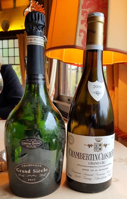 Le turbot cuit avec exactitude est particulièrement bon et je peux ne prendre que la chair seule ce qui me plait. Le Chambertin Clos de Bèze Domaine Armand Rousseau 2009 est jeune, mais je ne peux pas laisser passer une telle bouteille figurant sur la très intelligente carte des vins du restaurant. Le parfum du vin est envoûtant. Il promet des merveilles et s’ouvre comme les pages du passeport d’un globetrotter qui aurait voyagé sur tous les continents. En bouche ce qui apparaît en premier, c’est le velouté. Le vin est riche, complexe, d’une belle acidité de jeunesse, commence à être épanoui mais le velours est ce qui me frappe le plus. Ma fille dit qu’il est suave. C’est un très grand vin.