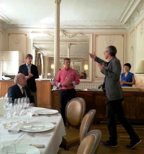 La « journée Hugel » commence au premier étage du restaurant Macéo par un déjeuner de presse. Il se trouve que c’est en cet endroit que se tiennent le plus souvent les séances de l’académie des vins anciens dont le regretté Jean Hugel était l’un des plus fidèles participants. Je suis sensible à cette concordance de lieu.
