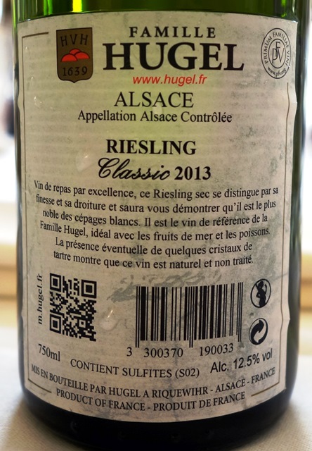 Le Riesling Classic Hugel 2013 est plus fruité et floral que le Gentil. Il est frais et fluide, un peu jeune et pas assez structuré. Il a un beau fruit de groseilles blanches et se montre pénétrant.
