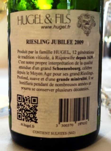 Le Riesling Jubilee Hugel 2009 (dont le nom Jubilee s’écrit sans accent) a un nez très gracieux. Il a un aspect beaucoup plus doux. C’est vin de noblesse et de netteté avec une grande persistance aromatique.