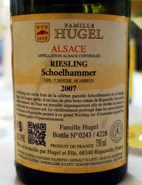 Le Riesling Schoelhammer Hugel 2007 est très gracieux, pur, éthéré et romantique. C’est un vin magique qui a tout pour lui. Il montre un peu de sucrosité et se révèle gastronomique. Je l’adore.