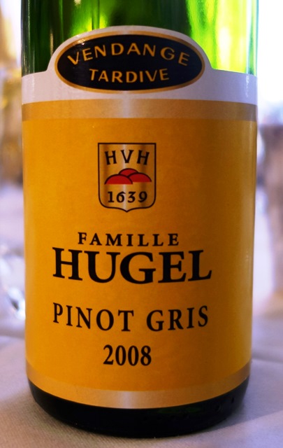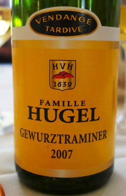 Le Gewurztraminer Vendanges Tardives Hugel 2007 est beaucoup plus floral et gracieux que le pinot gris, mais il a un finale moins précis. Le 2008 est plus adapté au stilton, car plus « nature ». Le 2007 est plus gracile mais très joli dans sa subtilité. Pour ce vin il faudrait autre chose que le stilton. Ce vin superbe aimerait un plat plus cuisiné. Le 2008 est plus riche.