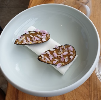 J’ai eu la chance de pouvoir bavarder avec le chef. Je l’ai complimenté en disant que sa cuisine ne cherche pas à plaire. Elle est spontanée et conforme à ses souhaits. Je lui ai cité les deux plats que j’ai préférés et il m’a répondu qu’il fait le même choix.