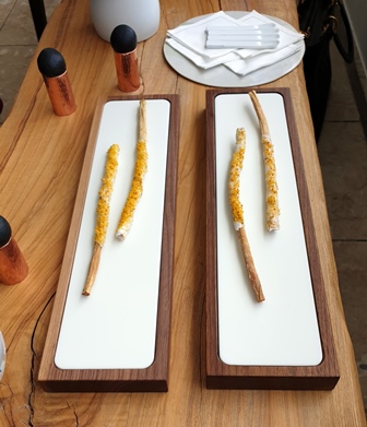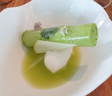 D’emblée on ressent le talent de Mauro Colagreco le chef et l’on pense à Laurent Petit, le chef du restaurant le Clos des Sens qui lui aussi a obtenu sa troisième étoile cette année. Les deux chefs ont un immense talent qui se voit dès les amuse-bouches. Le champagne est agréable et accompagne bien les mets variés. C’est sur les plats du repas que je constaterai que son finale est sec, comme s’il avait un léger goût de bouchon.