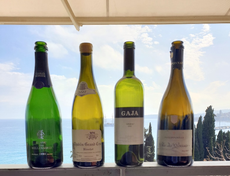 Avec des amis du Var, nous décidons d’aller déjeuner au restaurant Mirazur à Menton qui vient de recevoir trois étoiles après avoir obtenu des places enviables dans les classements mondiaux. Il faut près de 2h30 pour atteindre le restaurant qui surplombe la mer et offre de très beaux panoramas. L’accueil est souriant et naturel. Etant arrivé en avance avec ma femme, je regarde la carte des vins et je commande un Champagne Charles Heidsieck Cuvée des Millénaires 1995. Charles le sommelier l’apporte au moment où nos amis arrivent. Charles me fait goûter et j’approuve le vin. Il sert un premier verre, puis un second et tout-à-coup la bouteille devient un geyser, expulsant le vin et de fortes bulles comme un canon. Mon ami est aspergé légèrement, le sol est tout mouillé.