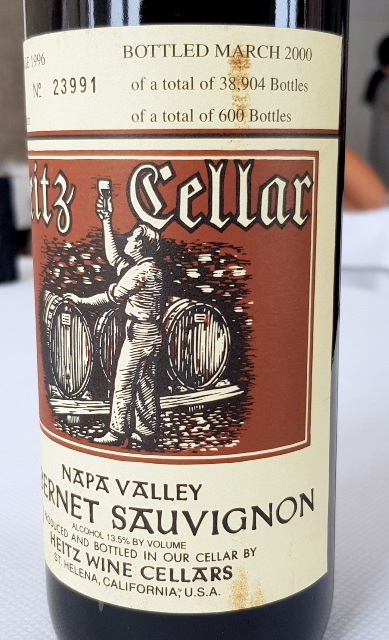 Le pigeon absolument superbe, à la goutte de sang, accompagne le Heitz Cellar Cabernet Sauvignon Napa Valley 1996. Le vin est riche et relativement horizontal. Aucune aspérité n’émerge mais il a une structure qui appelle le respect. On ressent des notes torréfiées comme celles du Royal Kebir. C’est sur le sang du pigeon mais aussi sur les navets que le vin rouge prend son envol. Il est riche et sympathique. Il lui manque juste la fraîcheur d’un Vega Sicilia Unico pour donner une grande émotion.
