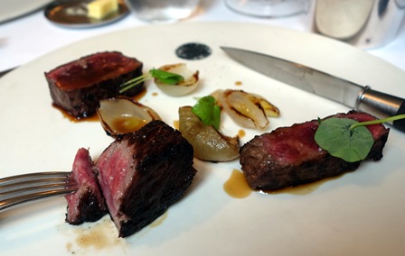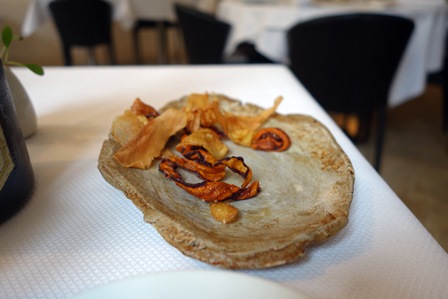 C’est un festival de délicatesse et d’élégance. La présentation des plats est jolie et raffinée, la vaisselle est assortie à l’esprit des plats. Tous les plats méritent des félicitations. Trois plats émergent pour mon goût, l’ormeau exceptionnel, le canard divin et les trois viandes dont la Galice est le point culminant. Il fait bon manger au Pages, avec la vue sur une cuisine animée et silencieuse, de grande efficacité dans une ambiance souriante.