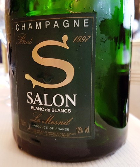 J’arrive en avance et donne un champagne que j’avais dans ma musette à rafraîchir. Le lieu me plaît toujours autant, avec ses mosaïques noires et or et une décoration de boutique presque centenaire. Mon choix de menu sera : Pappardelles de Fernando Pensato au caviar Prunier (45 grammes ) / Brandade de morue « façon Prunier » / soufflé à la Chartreuse. Le caviar est vraiment copieux et les pâtes légèrement crémées sont délicieuses. Il vaut mieux manger les pâtes et le caviar en des bouchées séparées, pour profiter de la longueur du goût délicieusement salé du caviar. Inutile de dire que sur le caviar, le Champagne Salon 1997 est mis en valeur. Ce champagne a deux qualités : vivacité et douceur. Il a en effet une très belle énergie et en même temps il a le calme souverain d’un Teddy Riner. Il a presque vingt ans et se révèle d’une magnifique maturité. C’est un grand champagne.