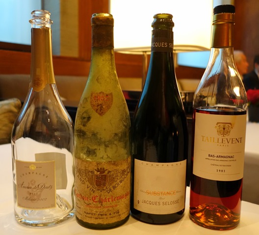 Le dessert délicieux est l’ami des vins. Il accompagne un Champagne Substance Jacques Selosse dégorgé en avril 2009 qui est lui aussi à un sommet. Racé, claquant comme un fouet, il occupe l’espace, conquérant comme Gérard Philippe dans Fanfan la Tulipe ou Alexandre Nevski face aux chevaliers teutoniques. Il est vineux, trace sa route sans oublier d’être charmeur. On dit « voir Naples et mourir ». Il n’est pas nécessaire de mourir après avoir bu ce Selosse, mais il est bon de l’avoir bu.
