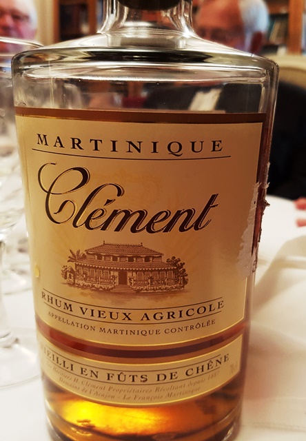 Les deux rouges accompagnent les délicieux fromages et le champagne Besserat de Bellefond échange sa fraîcheur avec le délicat dessert. La charmante Marie- Chrisline qui a fait un service de qualité nous tente avec un Rhum Vieux Agricole Clément relativement jeune mais qui a déjà une belle profondeur de joli caramel. Voilà un alcool bien sensuel.