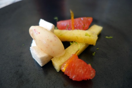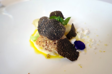 Comme d’habitude et même sans le chef Teshi, l’équipe très motivée a fait un menu d’une grande intelligence et d’une belle cohérence avec mes vins. Dans les menus, la truffe est en option. J’avais dit en début de repas : « vous pouvez y aller ». J’ai été pris au mot, car la truffe a été plus qu’abondante et généreusement distribuée.