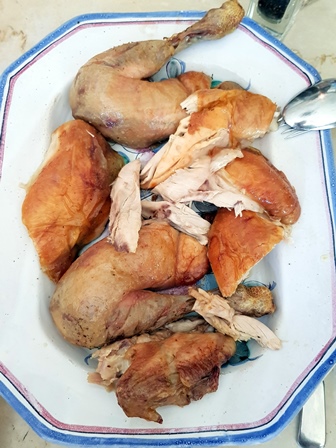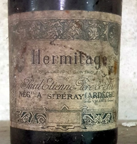 Nous passons à table et ma femme a préparé deux poulets. L’un est juste poêlé et l’autre joue sur un registre sucré salé avec notamment des abricots fumés. Je m’en tiendrai au poulet le plus classique pour apprécier les deux vins rouges. L’Hermitage Paul Etienne négociant 1943 avait un niveau assez bas mais une couleur sympathique. Le bouchon était venu entier, très sain. Le nez du vin est d’une finesse extrême. En bouche, le vin est extrêmement ciselé, fin, subtil. Il joue sur sa finesse. Il a une belle longueur et son âge n’existe pas, car le fruit qu’il expose est vif. Mes deux filles disent qu’à l’aveugle elles auraient immédiatement pensé à un bourgogne. Et nous nous amusons de cette idée car normalement on voit plus de bourgognes hermitagés que d’hermitages bourgognisés. Le vin a beaucoup d’énergie. Sa puissance vient progressivement sans réduire la grande finesse qu’il a. On le daterait volontiers du début des années 80. J’ai bu la lie d’une grande richesse.
