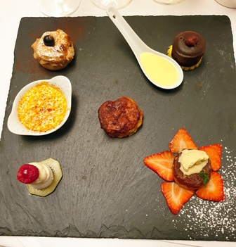 Les desserts sont aussi patchworks que les variations sur le foie gras et le résultat est convaincant. On revient vers le Champagne Delamotte 2007 toujours aussi vif et plaisant.