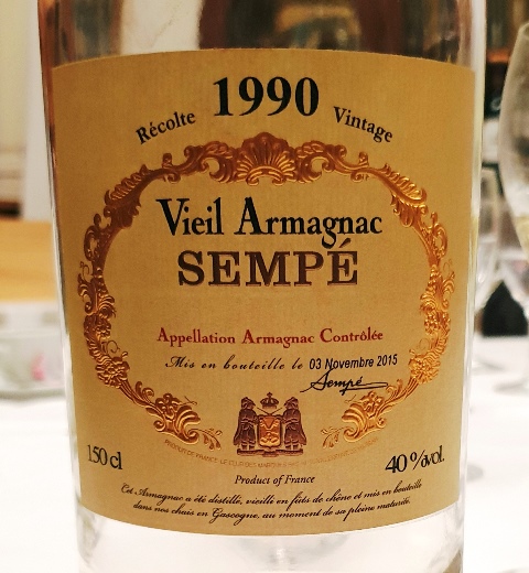 Le repas se conclut avec un Vieil Armagnac Sempé 1990 mis en bouteille en 2015. Ce repas au Yacht Club est particulièrement réussi, comme le service d’Amandine.