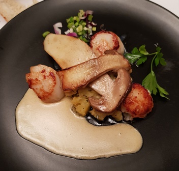 Mon classement des vins du repas serait : 1 : Château la Nerthe Châteauneuf-du-Pape magnum 2006, 2 – Château Carbonnieux rouge 2010, 3 – Champagne Pol Roger réserve magnum sans année. Pour les plats ce sont d’abord les cèpes l’un des thèmes du repas, les coquilles Saint-Jacques et la belle viande irlandaise.