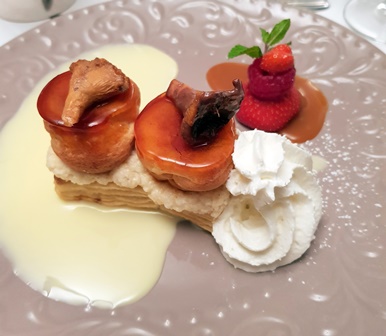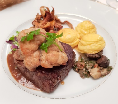 La cuisine fondée sur de beaux produits est toujours de grande qualité. Le plus abouti est celui des coquilles. La viande est goûteuse mais le plat est très poivré. La brouillade n’apporte pas grand-chose au homard remarquablement cuit qui se suffirait à lui-même. Le Saint-Honoré est superbe et l’ajoute de girolles est non seulement amusante mais goûteuse.