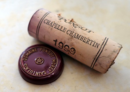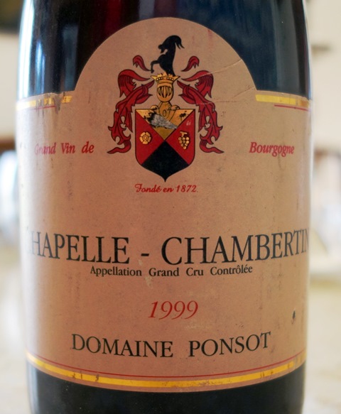 Sur le poulet label rouge à l’écrasé de pomme de terre, j’ai ouvert peu avant le repas un Chapelle-Chambertin domaine Ponsot 1999. C’est un vin que je ne connais quasiment pas. Ce qui m’impressionne, c’est sa jeunesse. On dirait un vin de l’année, tant il a de la verdeur. On dirait presque un vin jeune de Loire. Il a une belle amertume et il est assez dur. Il n’a pas du tout la rondeur et le charme des vins de Gevrey-Chambertin. Il a beaucoup de caractère et une grande précision. C’est un vin noble. Il lui manque juste une étincelle de plaisir. Mais nous verrons ce soir si une aération supplémentaire le rend plus urbain.