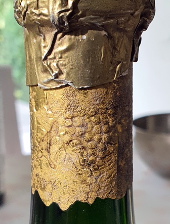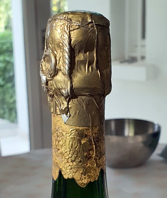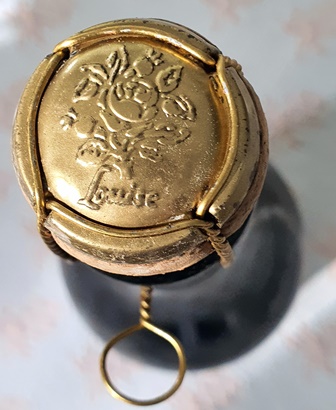 Une heure avant l’arrivée des invitées, j’ouvre un Champagne Pommery Cuvée Louise 1989. Le beau bouchon est lui aussi de belle qualité. Le pschitt est marqué même s’il n’est pas explosif. La couleur du champagne est d’un jaune d’or de blés d’été. Le nez du champagne à l’ouverture est vif et fort.